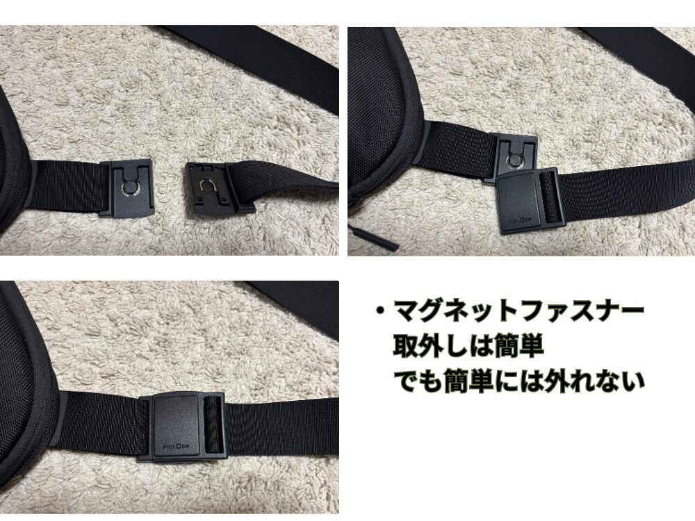 ショルダーストラップに付いているマグネットファスナーがとても便利でした。
