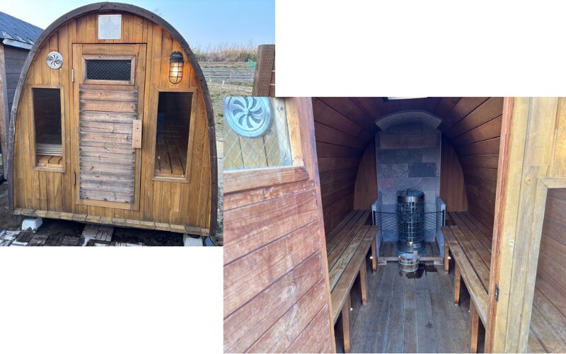 丸いフォルムが可愛いバレルサウナは、セルフロウリュも可能!