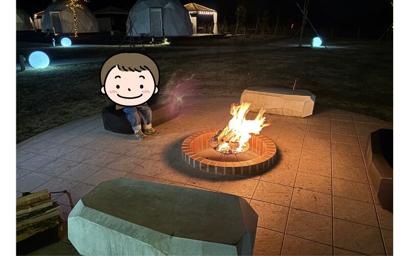 夜は専用スペースで焚き火タイム。
