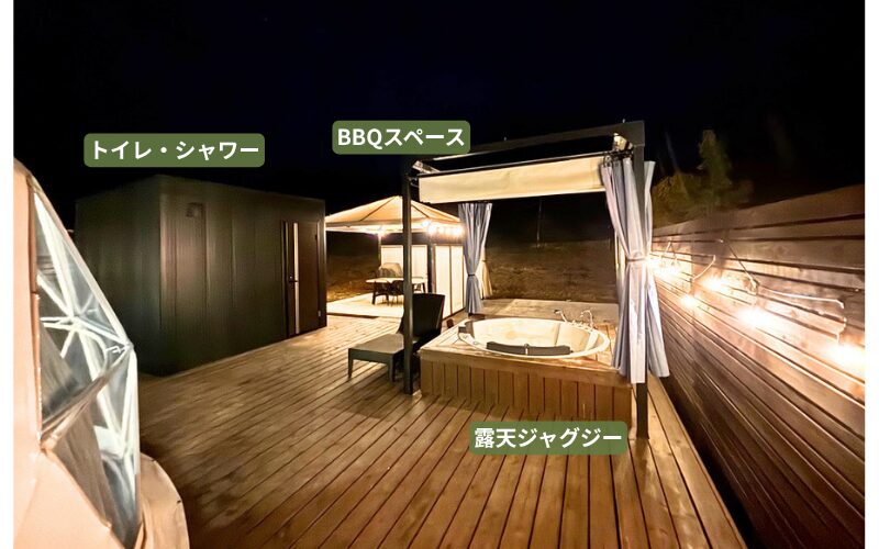 • ジャグジーなし、トイレ、シャワーは共同のドーム型テント