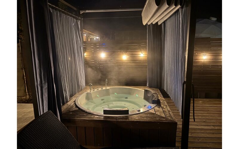 各棟に設置されたジャグジーは、夜になるとさらにロマンチックに。